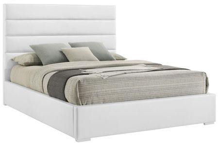 Elevate your bedroom with this modern upholstered bed featuring clean lines and a minimalist design. Wrapped in white faux leather, the panel headboard showcases horizontal channeling for a sleek and contemporary look. The sturdy frame includes slat support, eliminating the need for a box spring while ensuring mattress stability.Read More