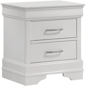 The Amalia Nightstand from Crown Mark blends elegance and functionality with its sleek white finish and timeless design. Featuring multiple spacious drawers with silver-tone hardware, it offers ample storage for clothing and essentials while enhancing any bedroom’s aesthetic.Read More