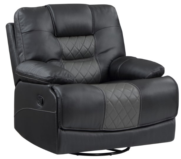 The transitional profile of the Fabian Collection is given a modern edge with the diamond stitching of the seating and electronic conveniences. The swivel glider chair features a manual reclining mechanism allowing for ease of motion when going from seated to reclined.Read More