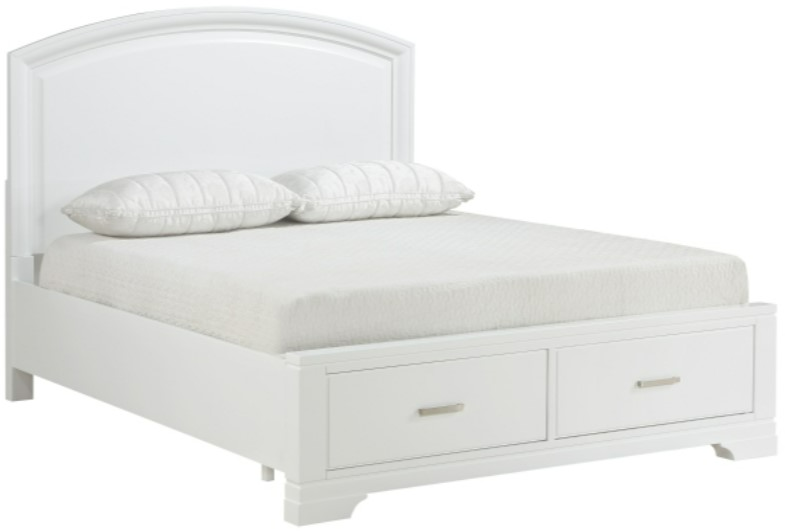 The intersection of modern lines and understated transitional style blend to create the Hudson Collection.The white finish over of the full bed presents a decoratively versatile addition to your bedroom. Polished chrome bar hardware fronts the storage drawers of the bed’s footboard.Read More