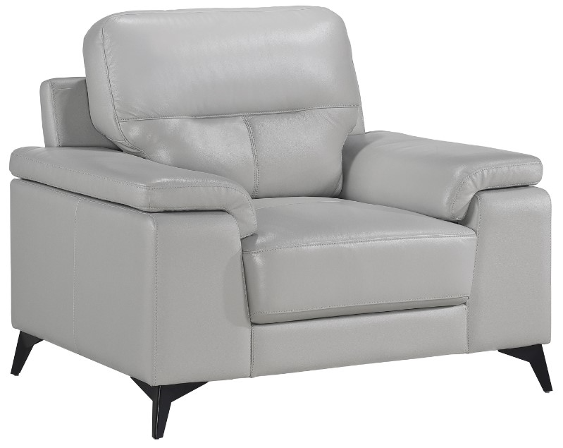 Styled for the modern home, the Mischa collection’s chair blends the luxurious feel of leather with the comfort of plush seating. The silver top grain leather cover, with faux leather, enhances the sleek profile of the collection. Contoured pillow-top arms and black metal legs further enhance the modern stance.Read More