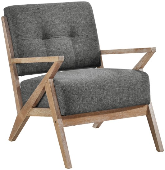 Angled lines intersect to create the modern profile of the Ollen collection. The rusticated solid wood frame is highlighted with an antique walnut finish. The dark gray fabric upholstery that covers the seat and back of the chair will serve as a complement to your home’s decor.Read More