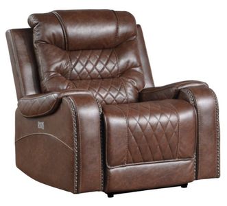 The Putnam collection is offered in brown breathable faux leather upholstery with diamond pattern stitching with nailhead-adorned arms for classic decorative effect.