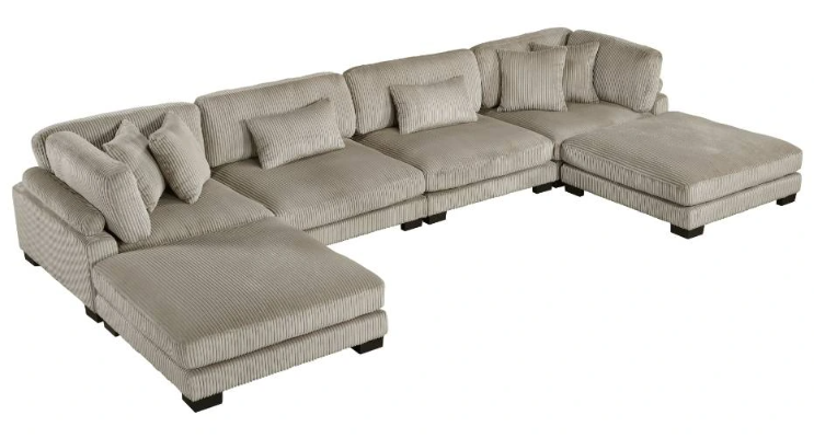 Configurable to your available space, the Traverse collection allows for the addition and detachment of pieces for a customized seating experience. The 6-piece sectional configuration consists of two corner units paired with two armless chairs and two ottomans. The corduroy fabric upholstery creates a plush expanse for a soft touch experience.Read More