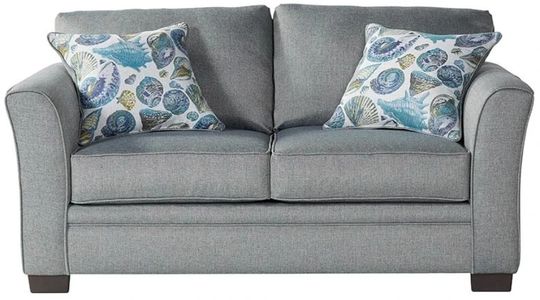 Bright 18500 Grande Turquoise upholstery dresses this transitional regular sleeper sofa with roll arms, reversible cushions, and subtle tailored detailing. It opens into a comfortable sleeper and blending style and versatility.Read More