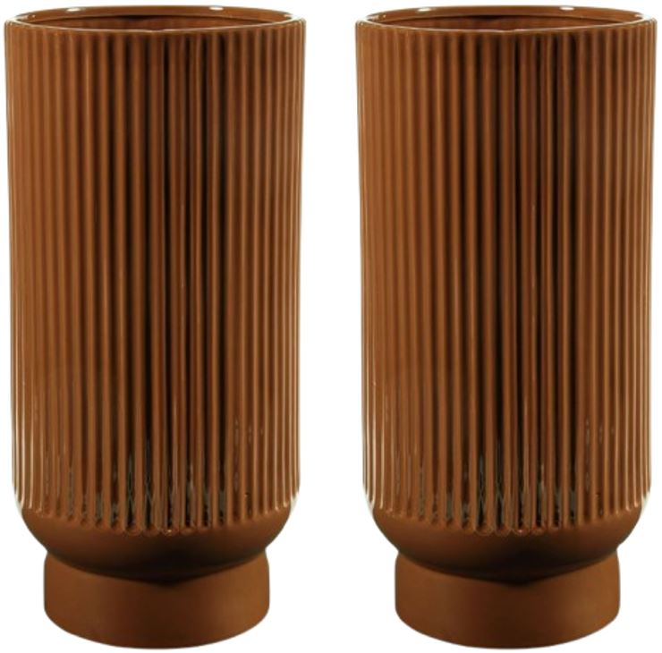 This ceramic vase makes a relaxed style statement. Its casual design and earthy burnt umber glaze complement your laid-back sensibilities. Delightfully simple and simply delightful, this vase subtly wows on its own or when filled with your favorite flowers whether it's displayed indoors or out.Read More