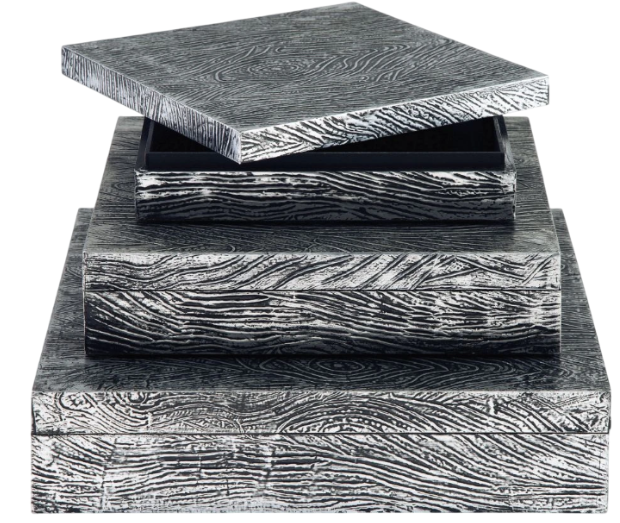 Ideal for a dresser, chest or accent table, this set of three wood and metal boxes is a contemporary choice for the forward-thinking modernist. The antiqued pewter-tone finish is an inspired touch.Read More