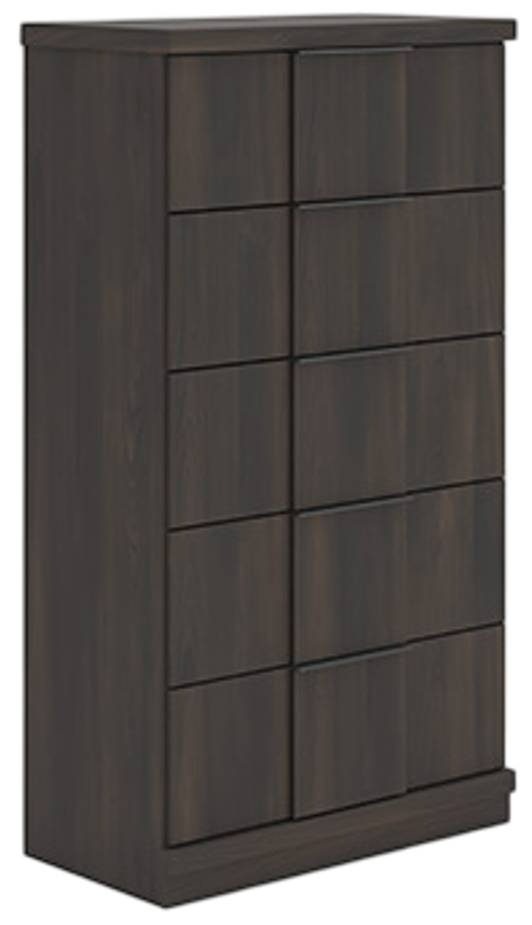 The Shaehartin 5-drawer chest combines deep brown finish and classic design for timeless elegance. With five spacious drawers and sturdy build, it delivers ample storage and refined style — perfect for organizing clothes while enhancing bedroom décor with subtle sophistication.Read More